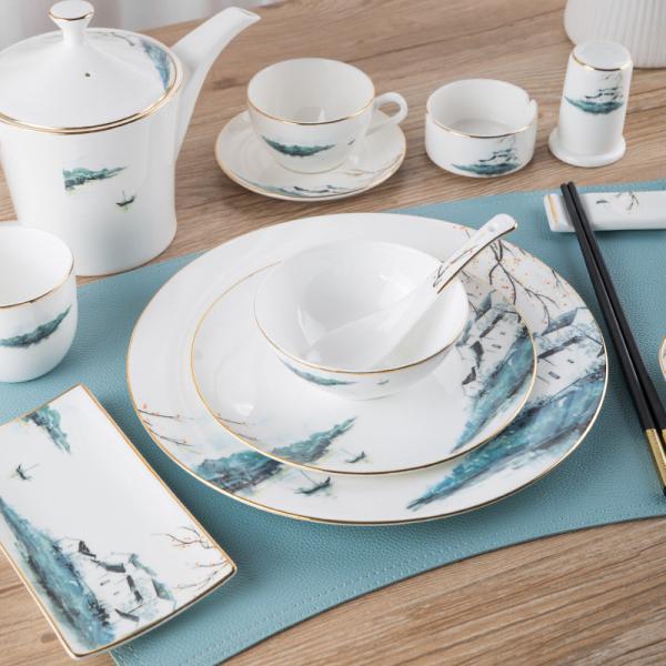 Gift Box Ceramic Plate Set , Round Dishware Set Porcelain Dinnerware Set Images |
